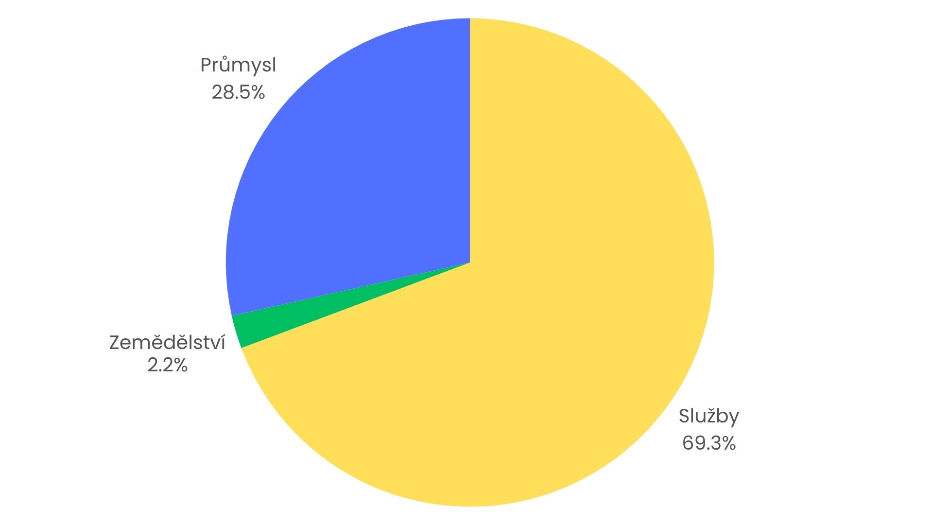 Podíl hlavních sektorů na zaměstnanosti v ČR v 1Q 2025 (v %)