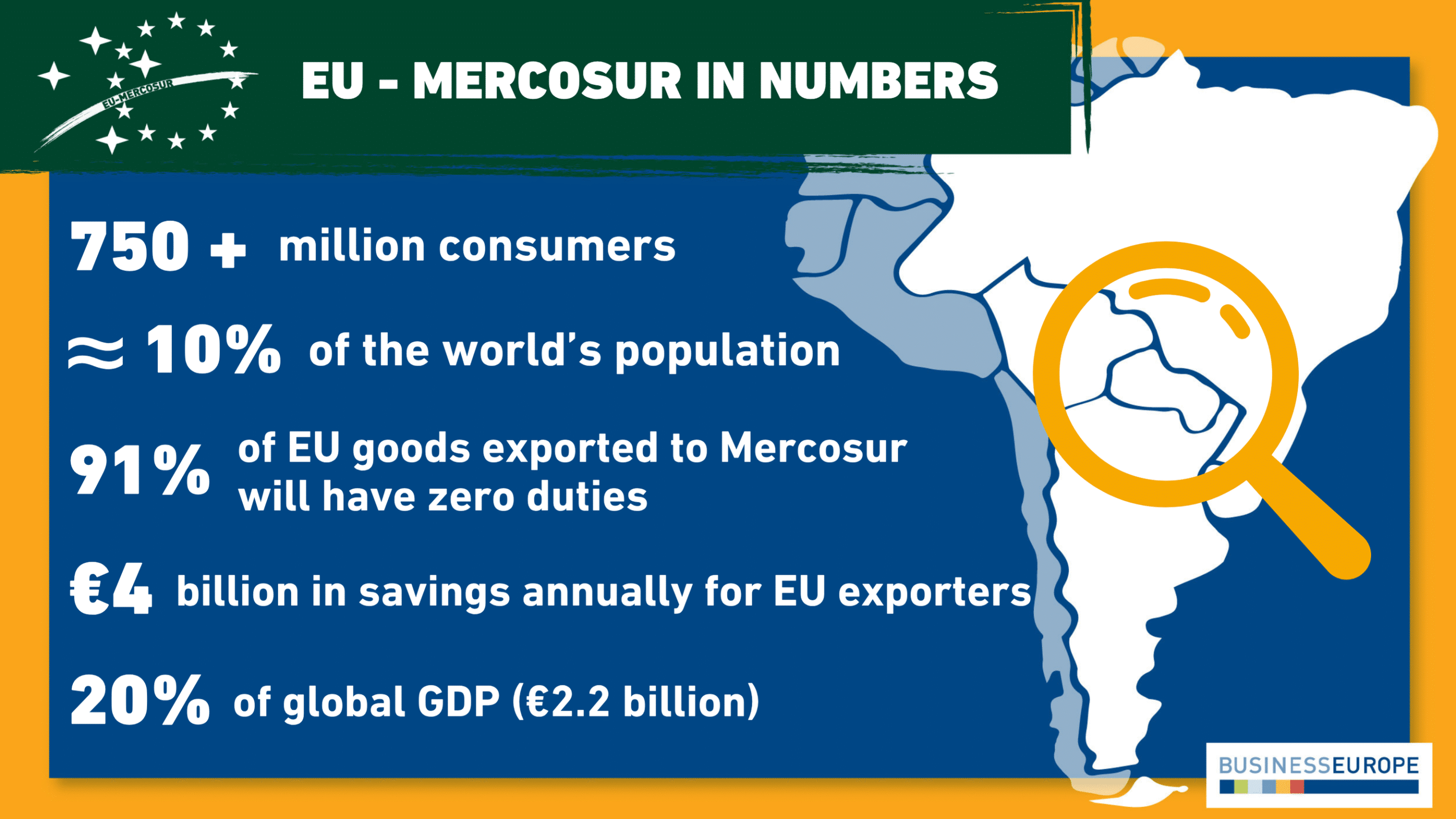 - Impact study of the EU–Mercosur Free Trade Agreement – a win-win for both sides (a study by BusinessEurope’s Swedish partner confederation on the positive impacts of the agreement)